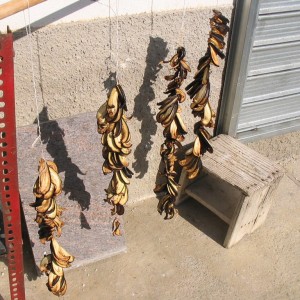 Si tagliano a strisce per la loro lunghezza; si infilano a collana e si